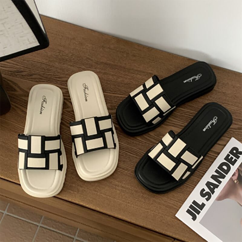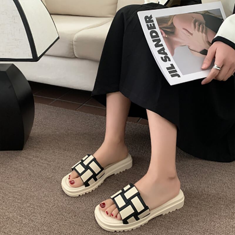 【海外からの取り寄せ】2025新作 レディース フラットサンダル 歩きやすい チェック柄 フラット 夏サンダル ぺたんこ スリッパ #[sandal658_8800]【送料込み】【250704】