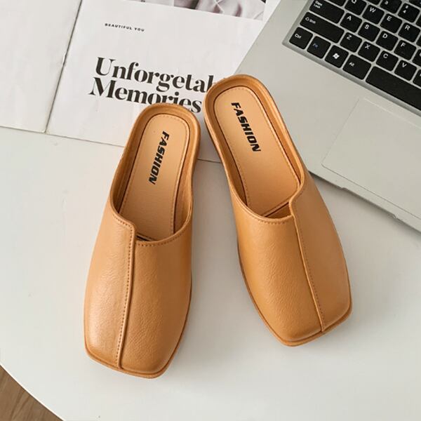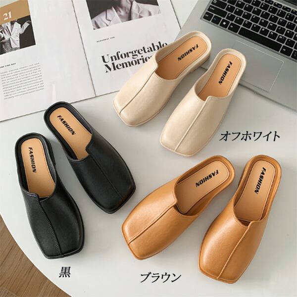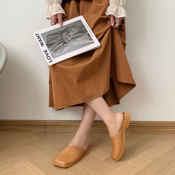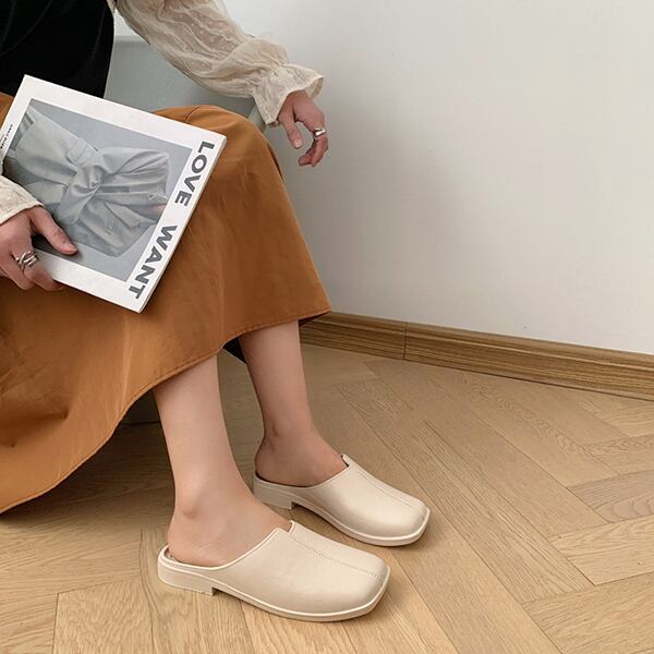 上品なセンターシーム風デザイン スクエアトゥミュール