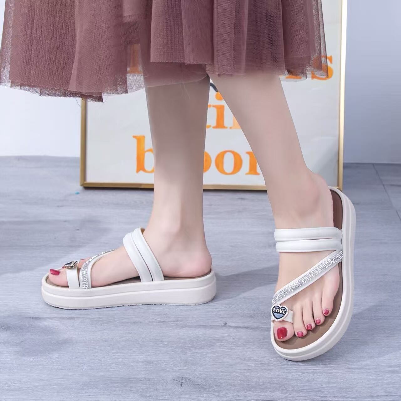 ラインストーンがスタイリッシュ トングサンダル