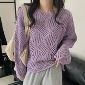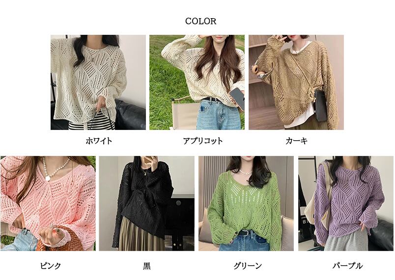 【海外からの取り寄せ】 2025新作 透かし編み メッシュ ニット 長袖 カギ編み 透け感 抜け感 サマーニット #[tops597_12800]【送料込み】【250712】