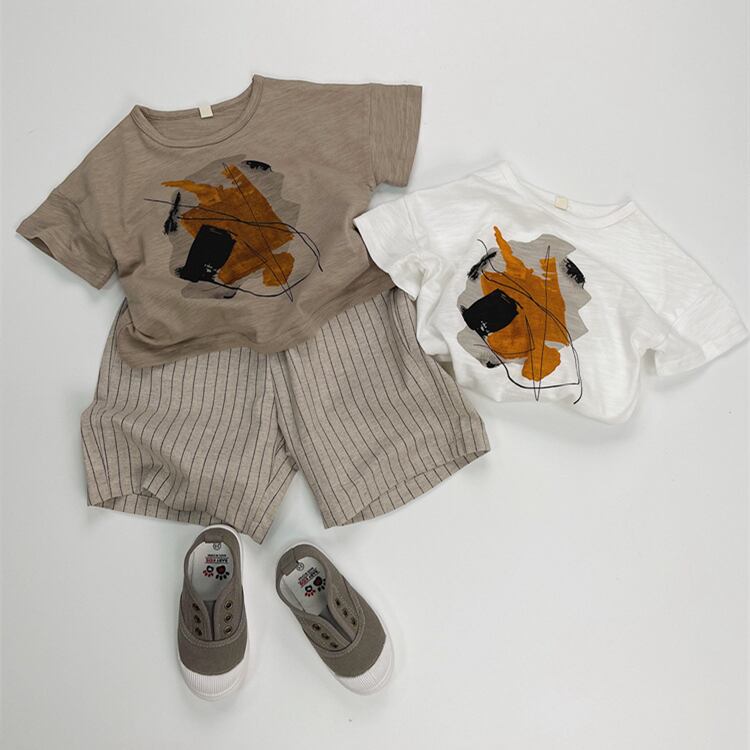 【海外からの取り寄せ】2025夏新作 子供服 レトロ 半袖 クルーネック Tシャツ トップス 可愛い プリント 柔らか 2色 #[ckd1094490_11600]【送料込み】【250422】