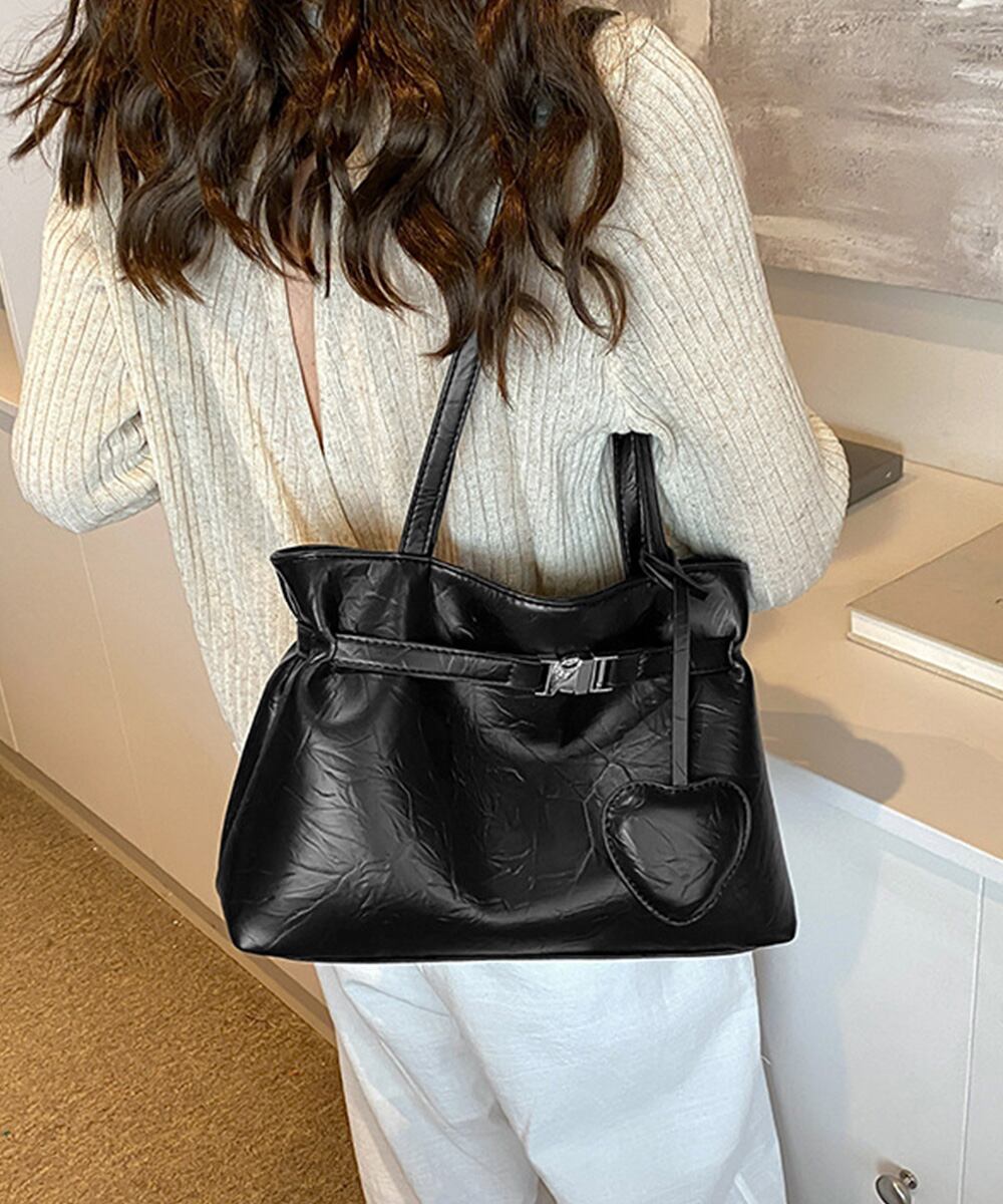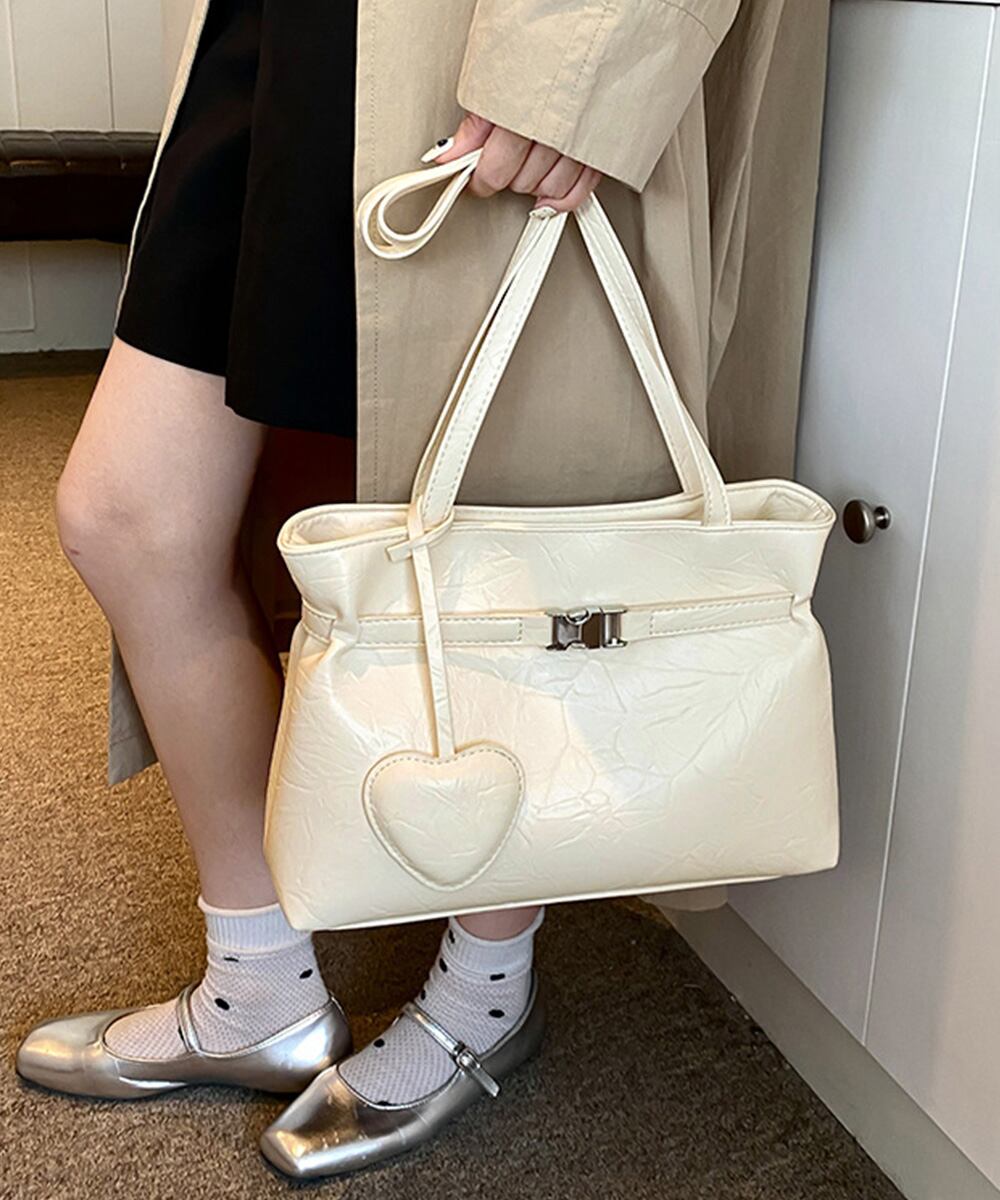 【日本倉庫からの発送】 トートバッグ ハートチャーム付き肩掛け鞄 #[83SHUAIMI-001_24600]【送料込み】【251029】