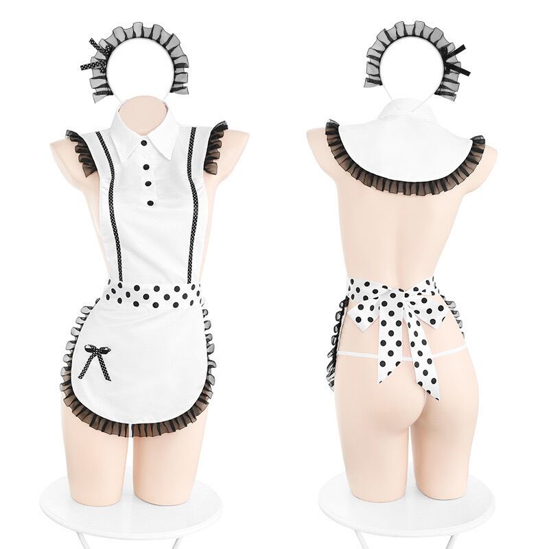 【即納】黒白 水玉柄 メイド エプロン セクシー ランジェリー【 #[5440_14000]】【送料込み】【251210】