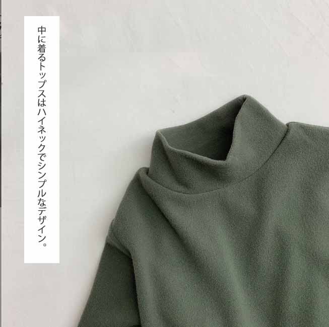 ・中に着るトップスはハイネックでシンプルなデザイン。
