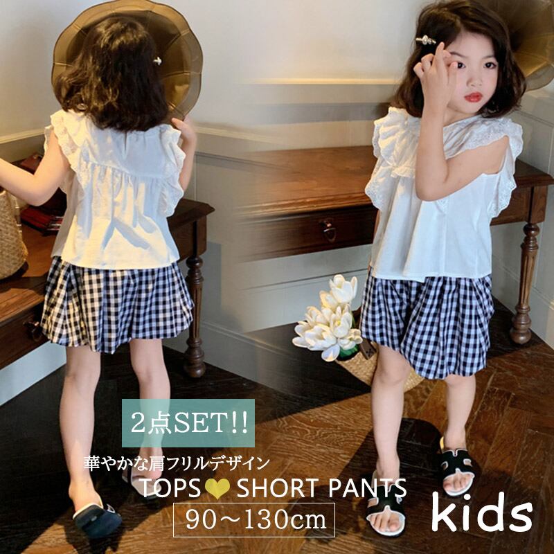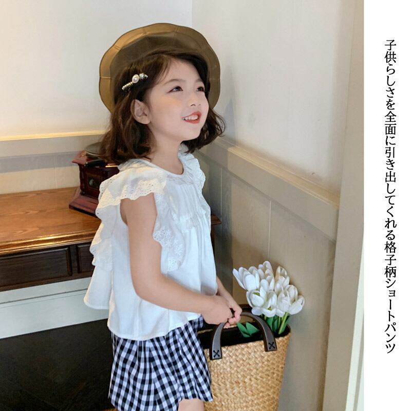 【海外からの取り寄せ】2022新作 韓国子供服 キッズ 半袖 ボトムス パンツ 女の子 フリル 上下セット2点セット 格子 #[kids427_14800]【送料込み】【250508】