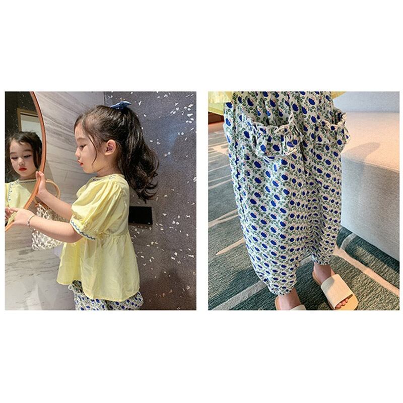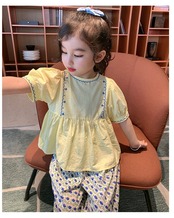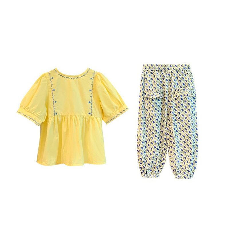 【海外からの取り寄せ】2022新作 韓国子供服 キッズ 半袖 ボトムス パンツ 女の子 かわいい 上下セット2点セット イエロー #[kids426_14800]【送料込み】【250508】