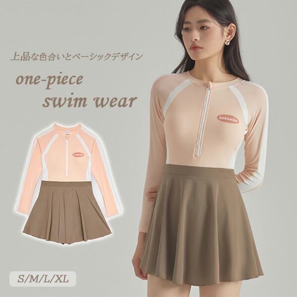 ・上品な色合いとベーシックデザインのワンピース水着です。