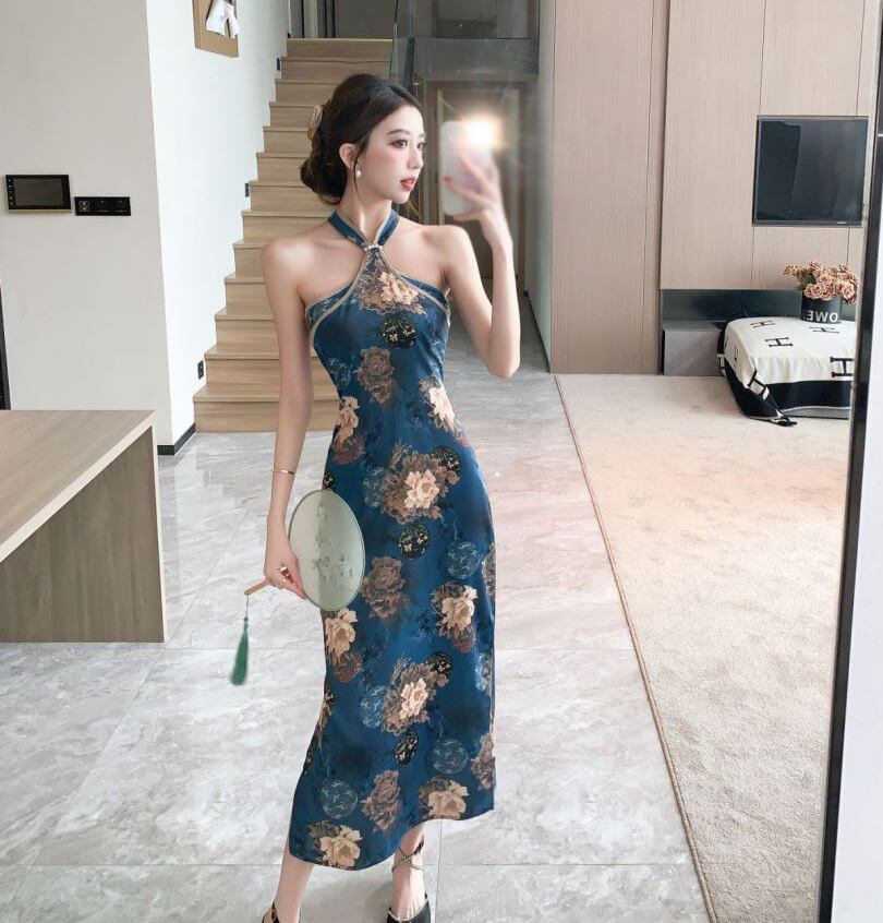 【即納】紺色 袖なし ロング丈 パーティードレス【 #[3285_22000]】【送料込み】【251210】