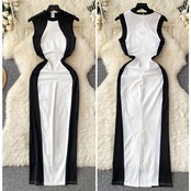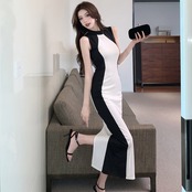 【即納】黒白 袖なし ストレッチ パーティードレス【 #[3288_22000]】【送料込み】【251012】