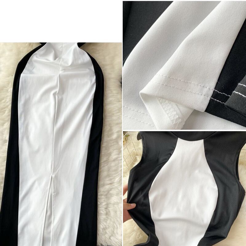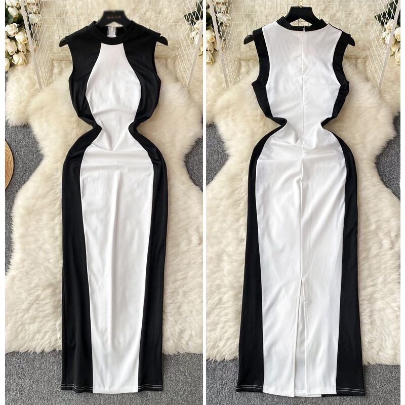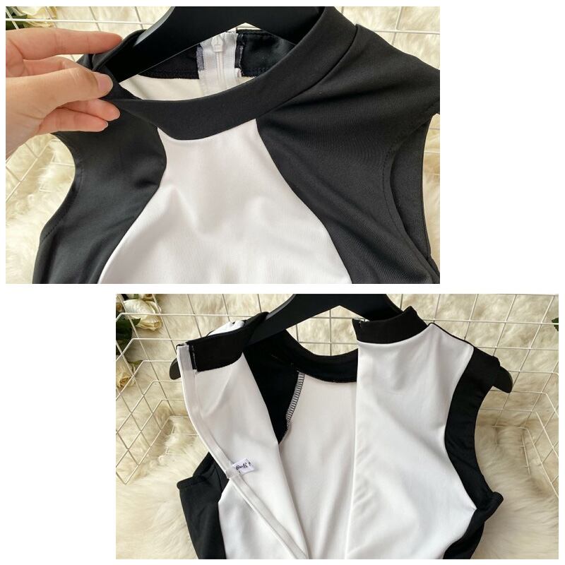 【即納】黒白 袖なし ストレッチ パーティードレス【 #[3288_22000]】【送料込み】【251210】