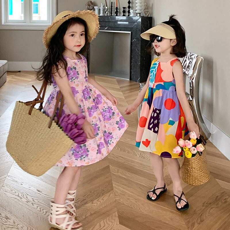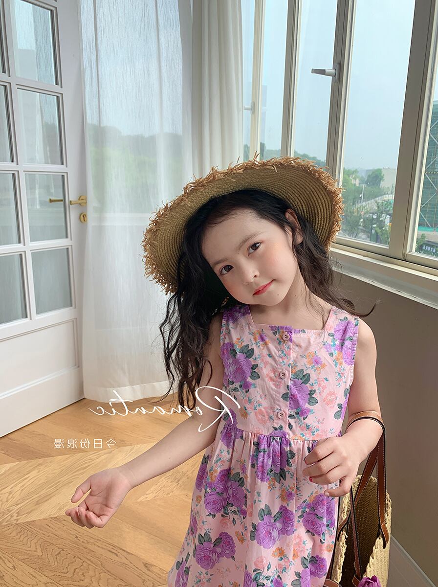 【海外からの取り寄せ】2022新作 夏 女の子 スクエアネック 総柄 ワンピース 子供服 ノースリーブ 花柄 可愛い #[ckd109110_9600]【送料込み】【250512】
