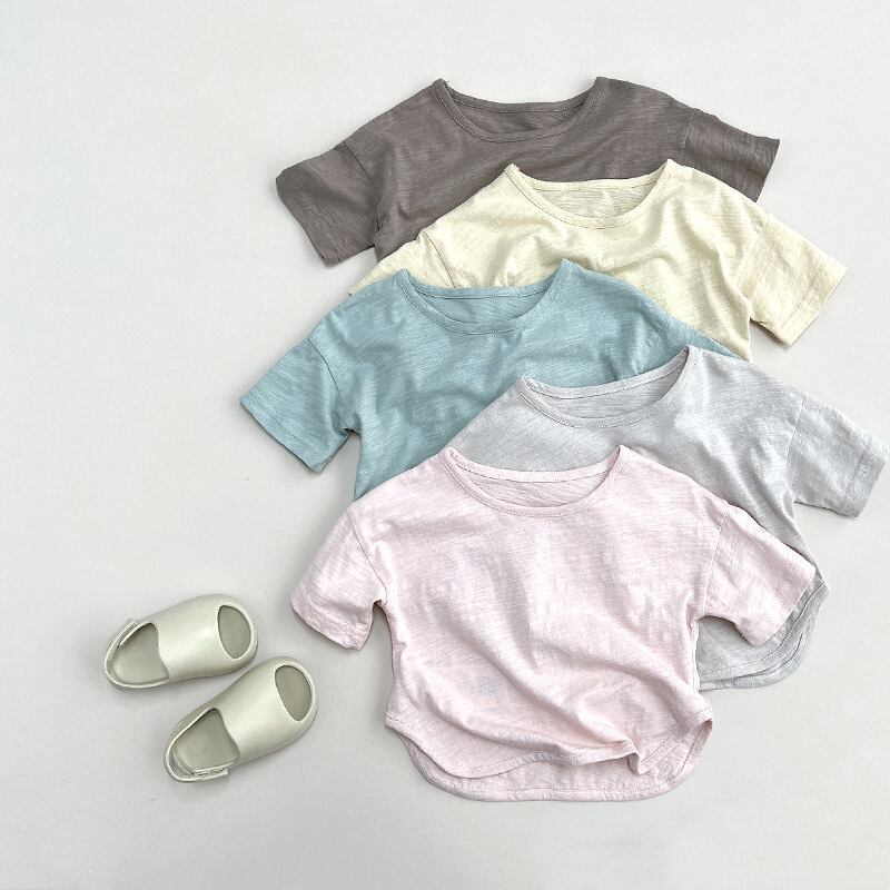 【海外からの取り寄せ】2025夏新作 子供服 半袖Tシャツ クルーネック カジュアル トップス 可愛い 無地 定番 柔らか 5色 #[ckd1094500_10000]【送料込み】【250422】