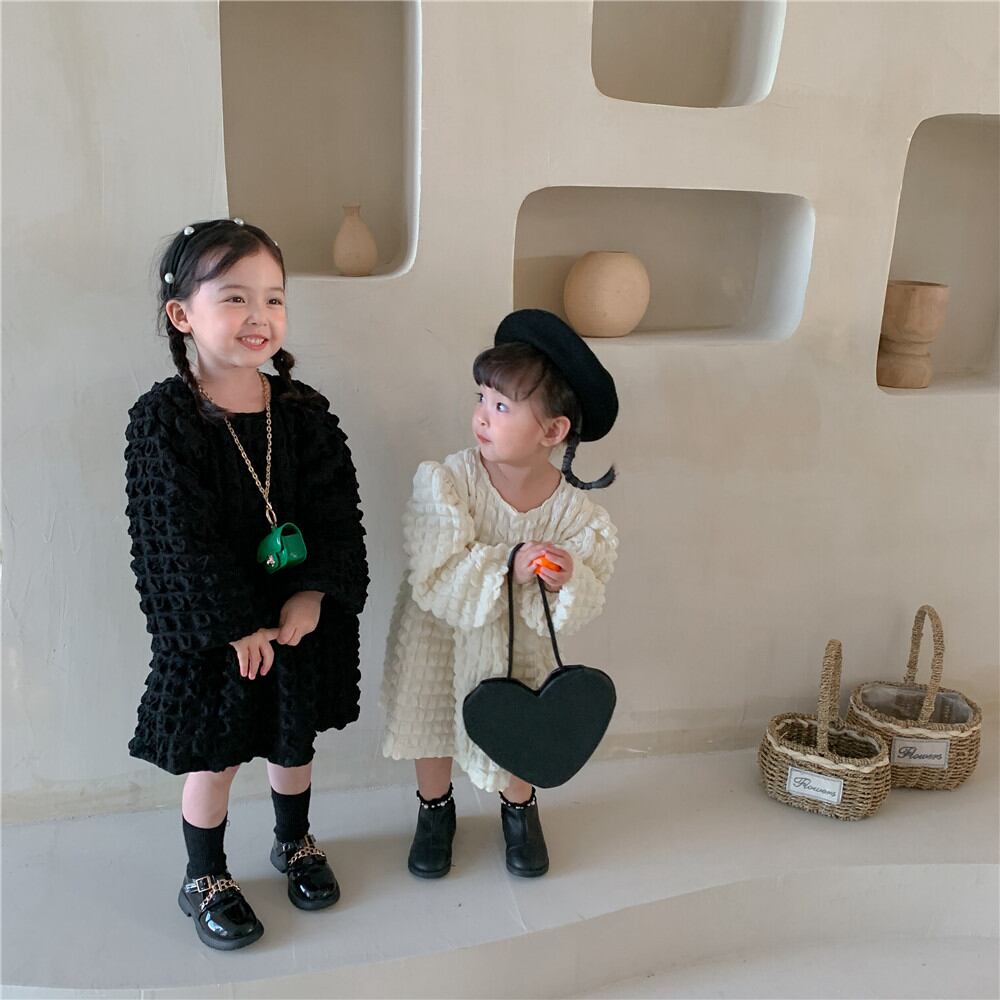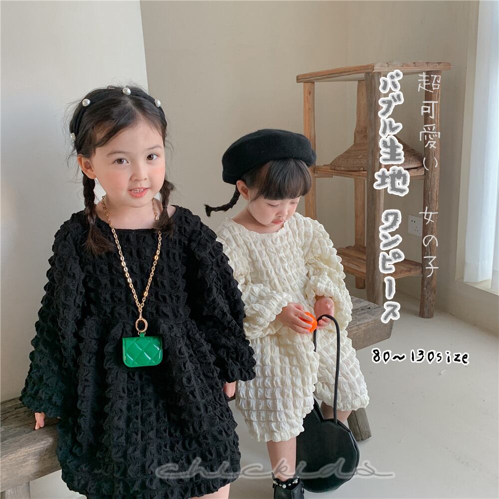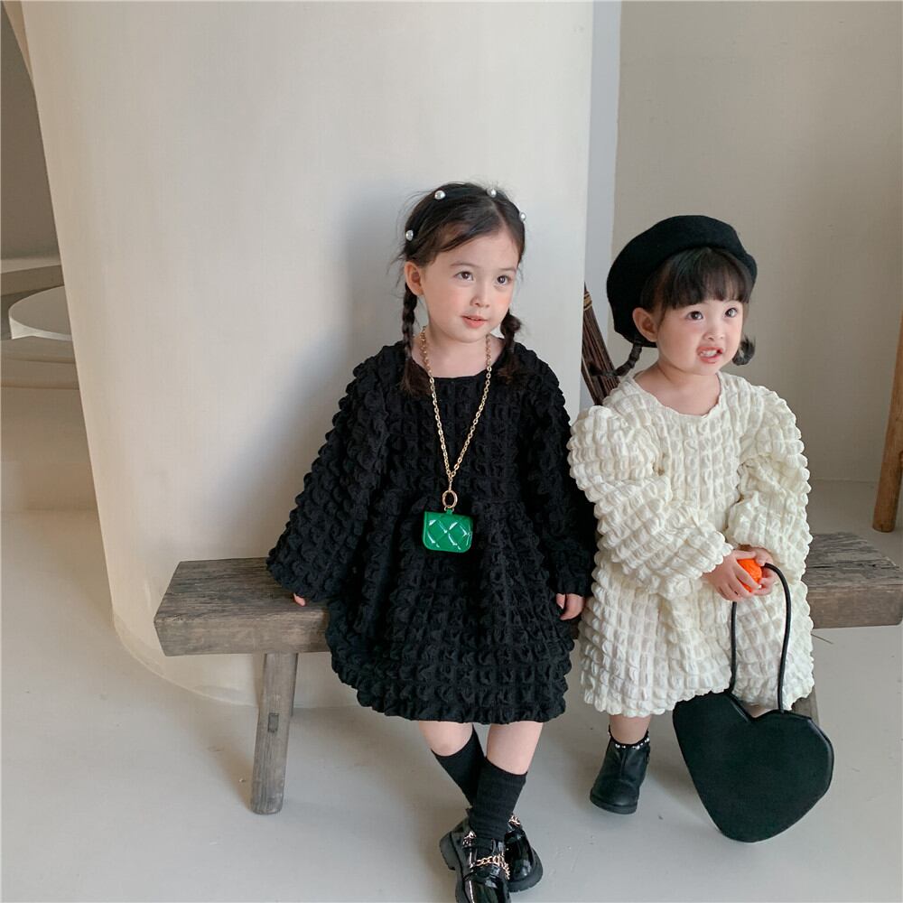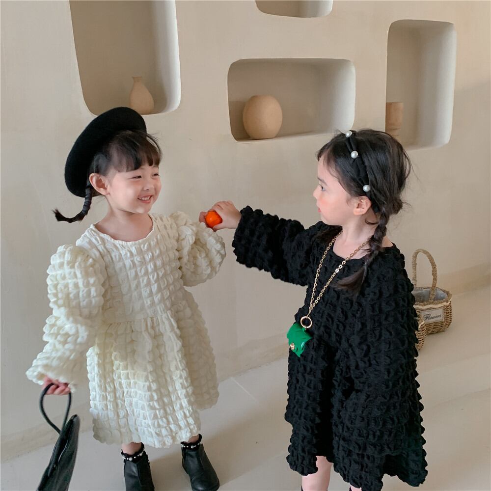 【海外からの取り寄せ】秋新作 バブル生地 ワンピース 韓国子供服 ベビー服 女の子 おしゃれ 長袖 可愛い 無地 #[ckd1029173_23100]【送料込み】【250525】