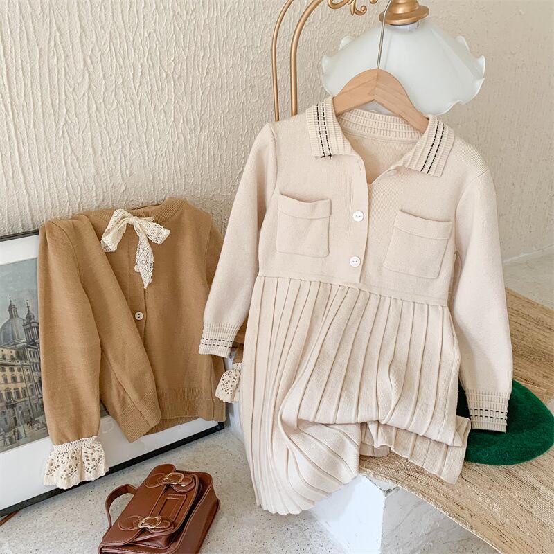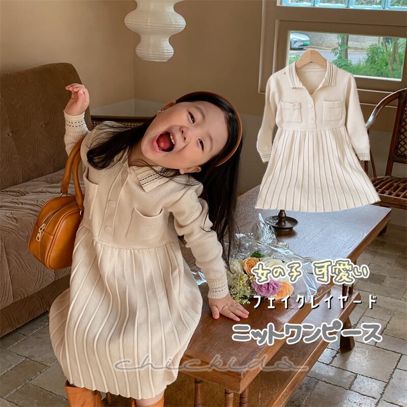 【海外からの取り寄せ】2022新作 秋 女の子 ニットワンピース 無地 フェイクレイヤード 可愛い フリル おしゃれ Aライン #[ckd1029162_26000]【送料込み】【250525】