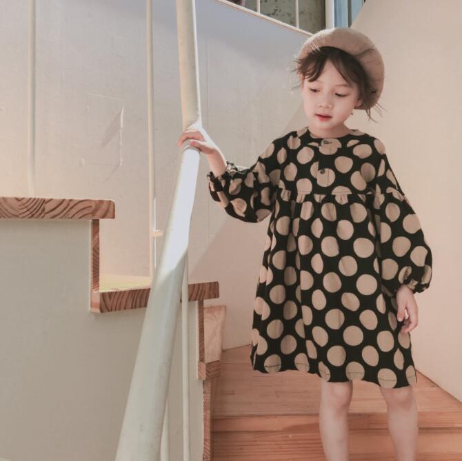 【海外からの取り寄せ】秋 女の子 ワンピース 韓国子供服 パフスリープ ドット柄 可愛い 子供服 水玉プリント 長袖 #[ckd103375_12800]【送料込み】【250525】