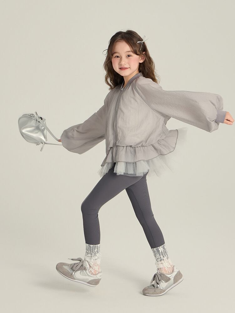 【海外からの取り寄せ】2025新作 韓国子供服 キッズ トップス 無地 メッシュ 女の子 アウター フリル シアー 透け感 ふんわり #[kids841_23800]【送料込み】【250923】