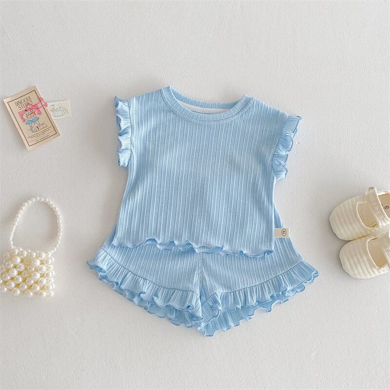 【海外からの取り寄せ】2025夏新作 ベビー服 フリル セットアップ チョッキ ハーフパンツ 可愛い 子供服 無地 5色 #[ckd1094521_14000]【送料込み】【250524】
