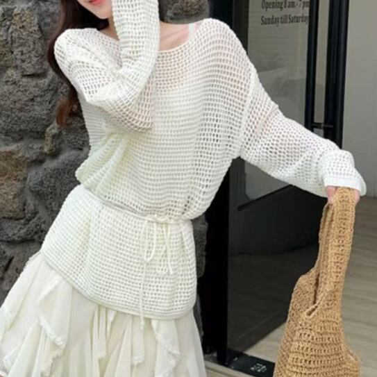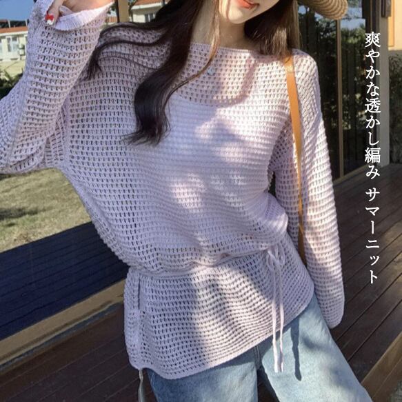 【海外からの取り寄せ】 2025新作 透かし編み メッシュ ニット 長袖 カギ編み 透け感 抜け感 サマーニット #[tops600_9800]【送料込み】【250712】