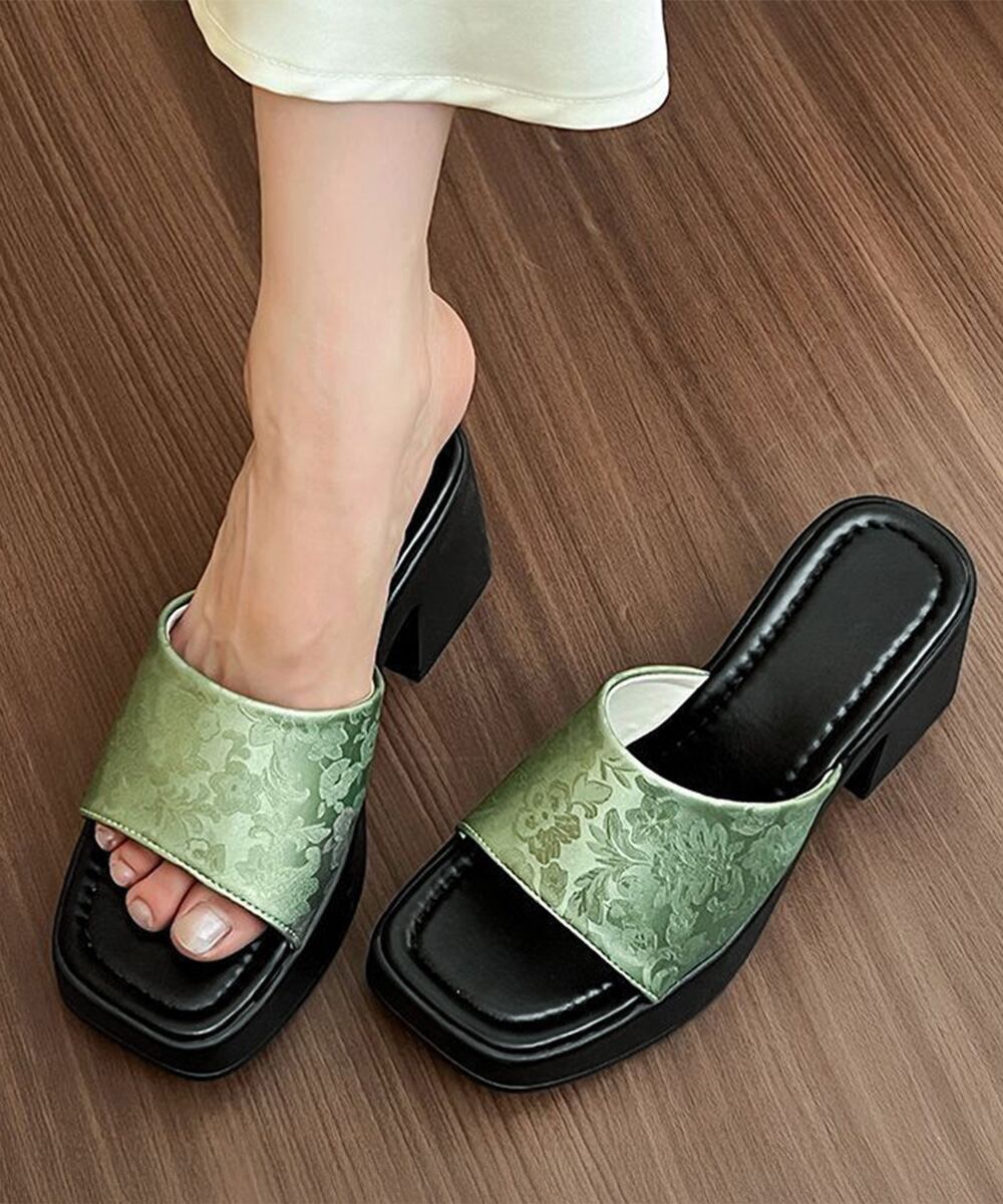 フェミニンな素材が足元をエレガントに演出するミュールサンダル。