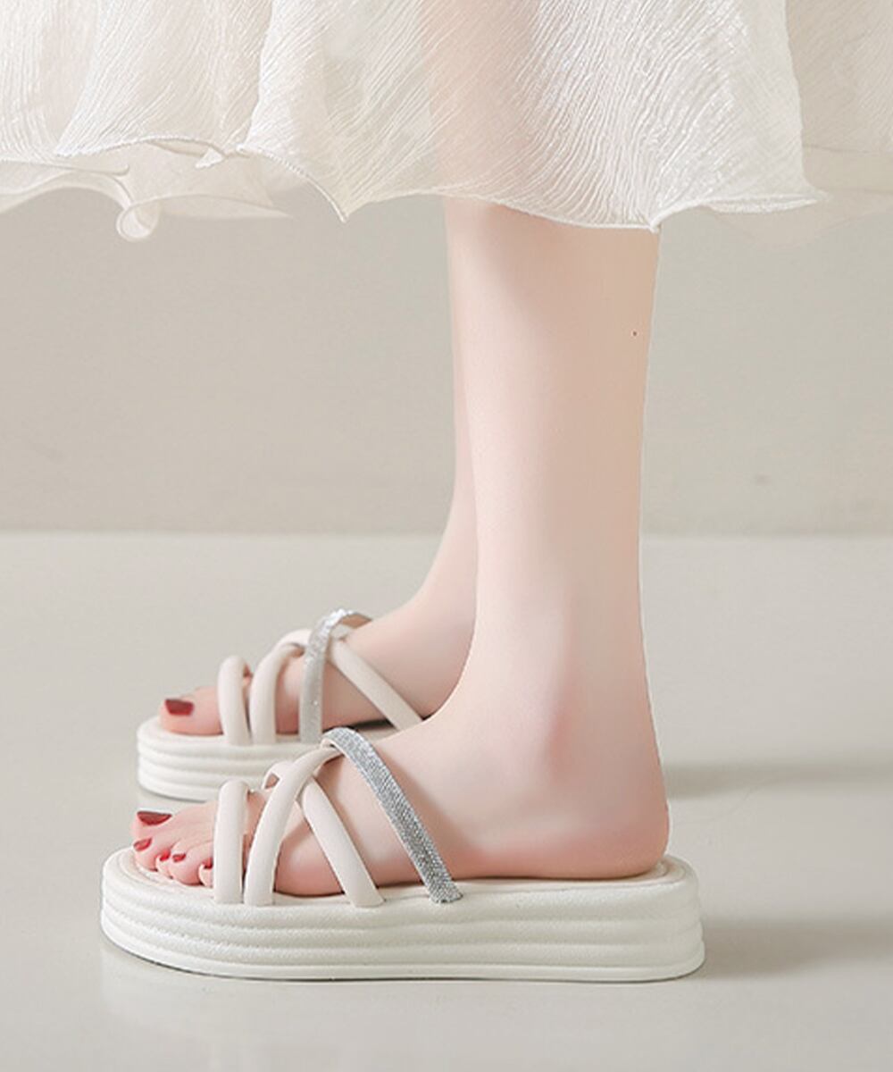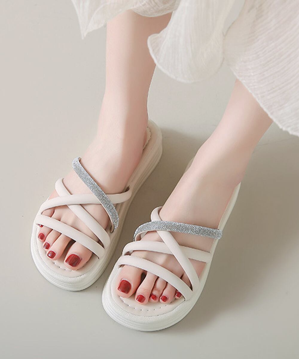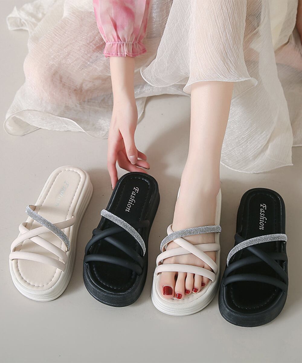 スリッパサンダル フラットサンダル クロスベルト キラキラ 歩きやすい 疲れない 美脚 可愛い お洒落