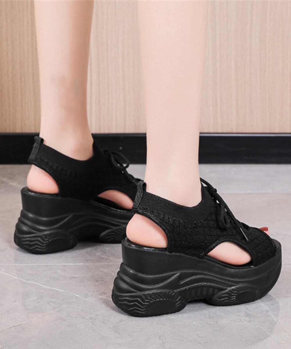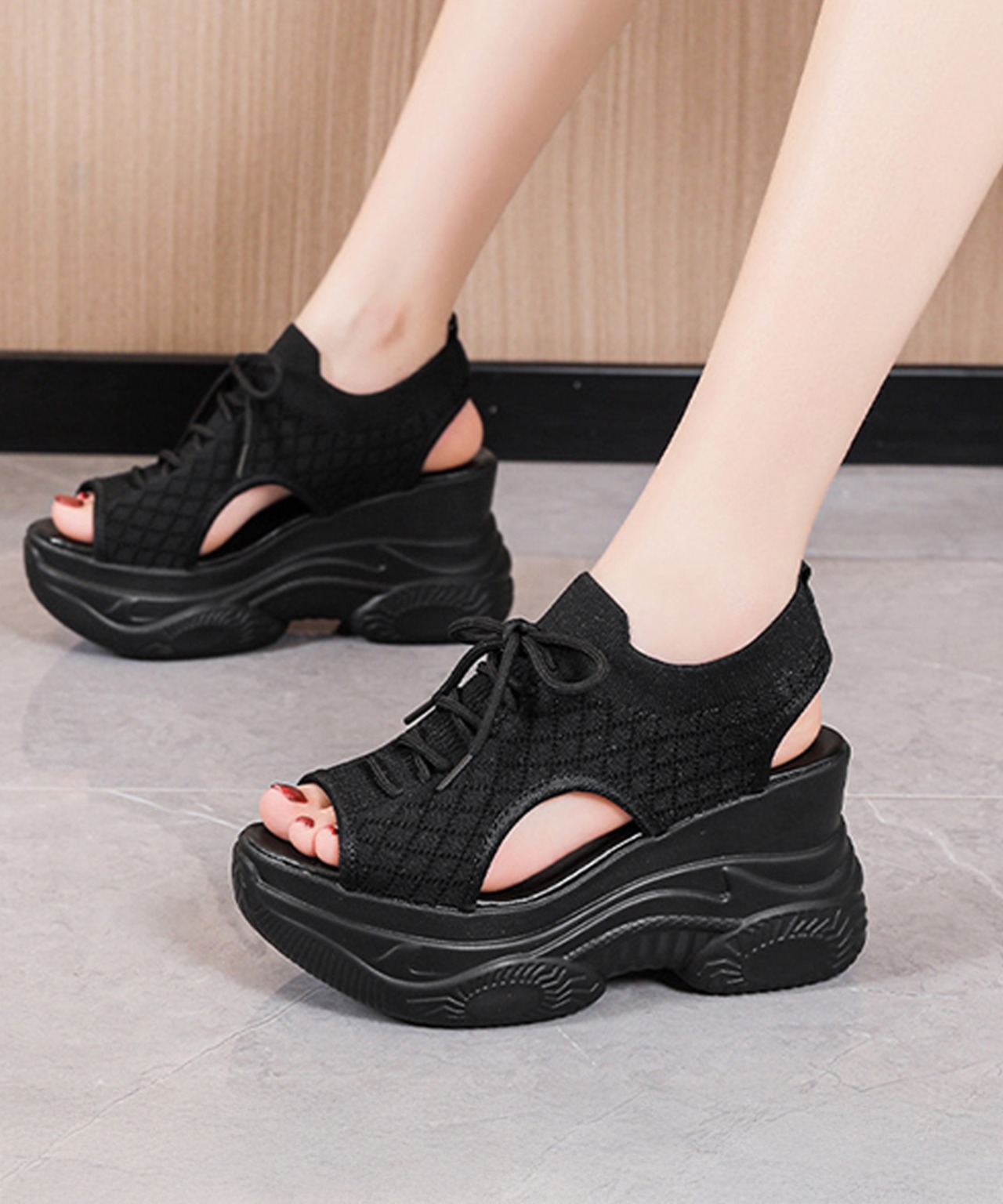 ボリュームソールサンダル レースアップ靴 歩きやすい痛くないスタイルアップ 韓国風サマーシューズオープントゥ 通気性軽量
