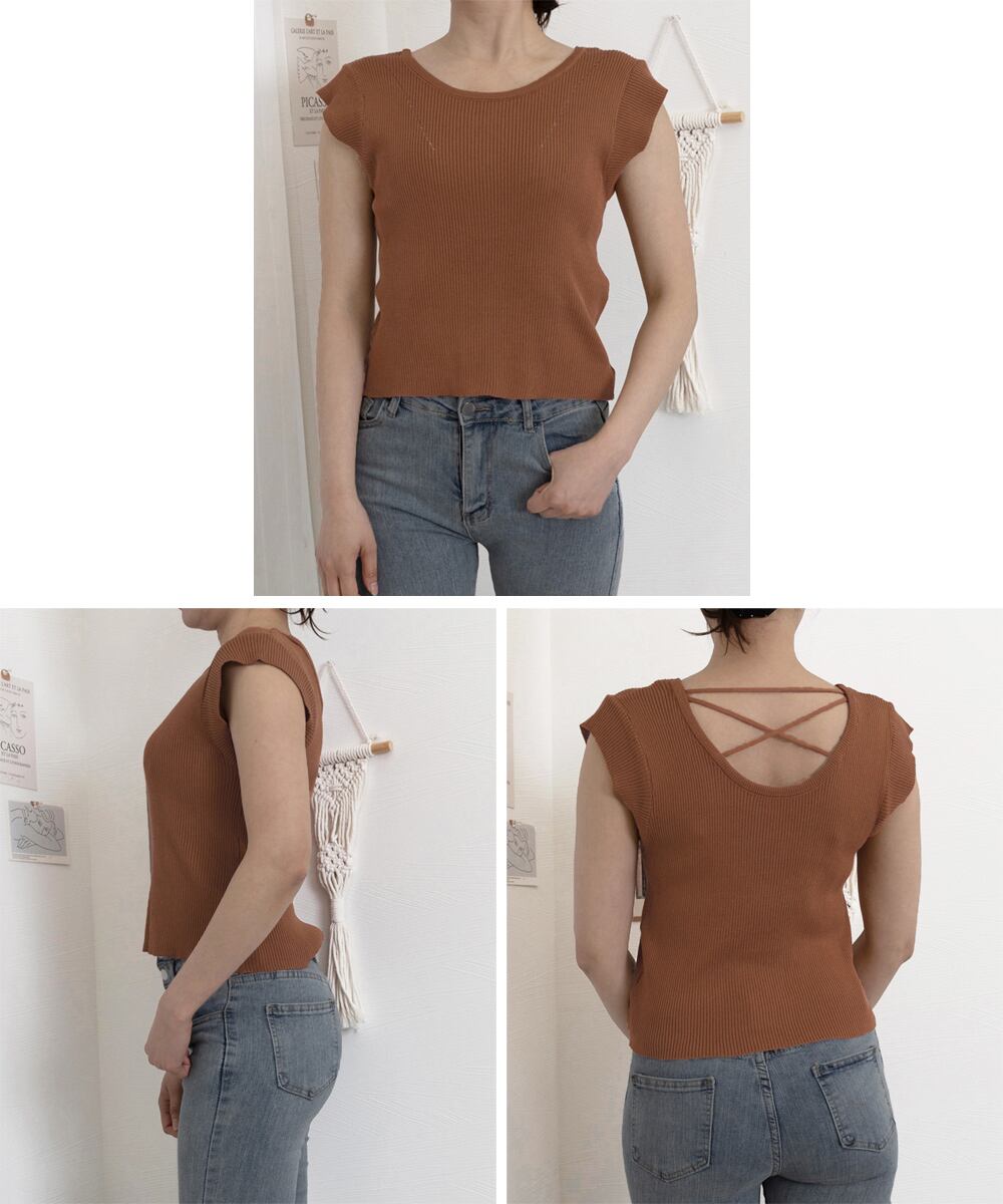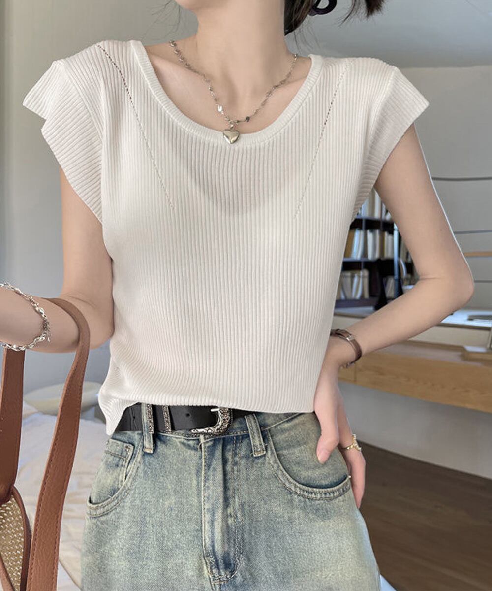 【日本倉庫からの発送】 フレンチスリーブ サマーニット 韓国風 #[85YN-900583_14800]【送料込み】【250712】