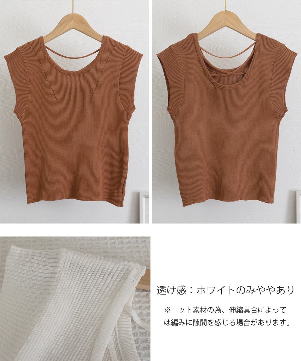 レディース ニットトップス バッククロス 春夏トップス 丸首 着回し ニットソー プルオーバー おしゃれ カジュアル