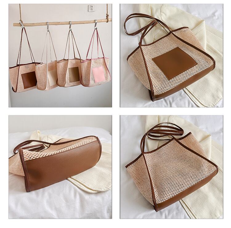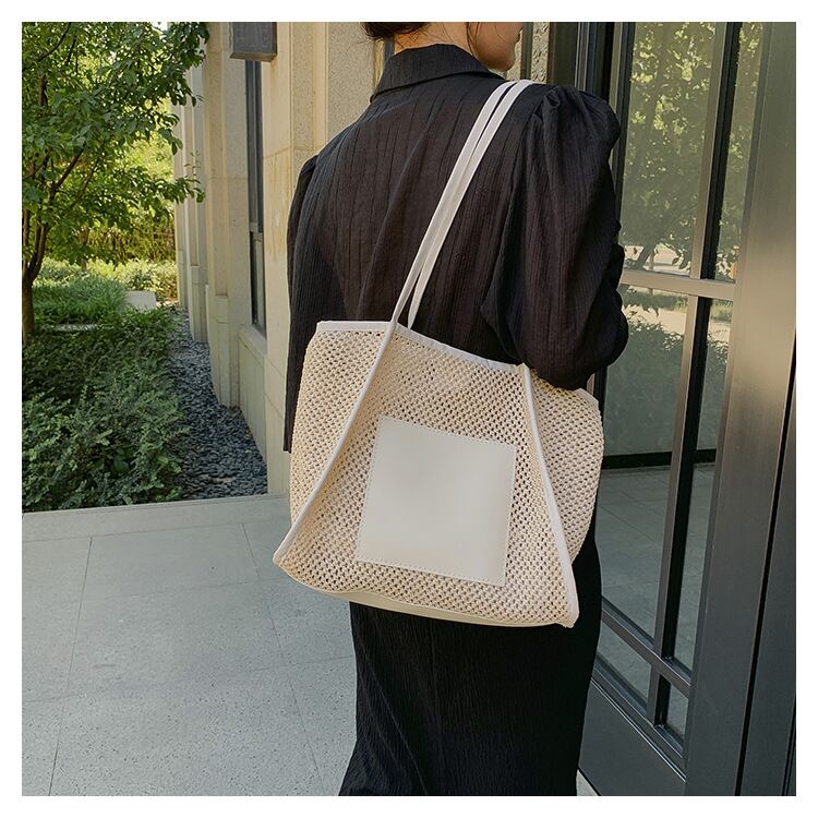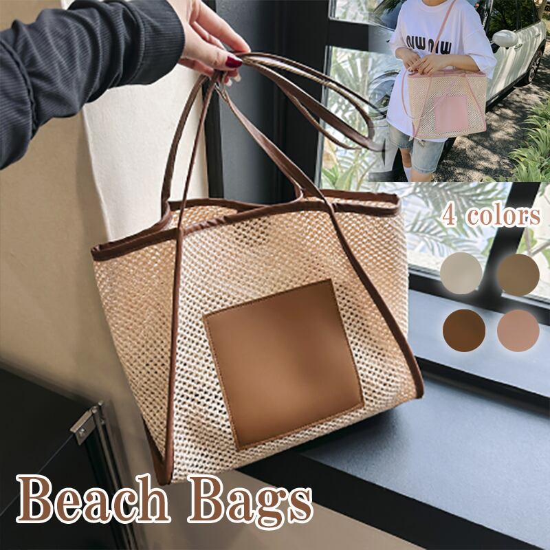 【海外からの取り寄せ】2025新作 レディース 透け感 編み込み ビーチバッグ メッシュ 涼しげ トートバッグ 大容量 軽量 エコバッグ #[bag1697_9900]【送料込み】【250704】