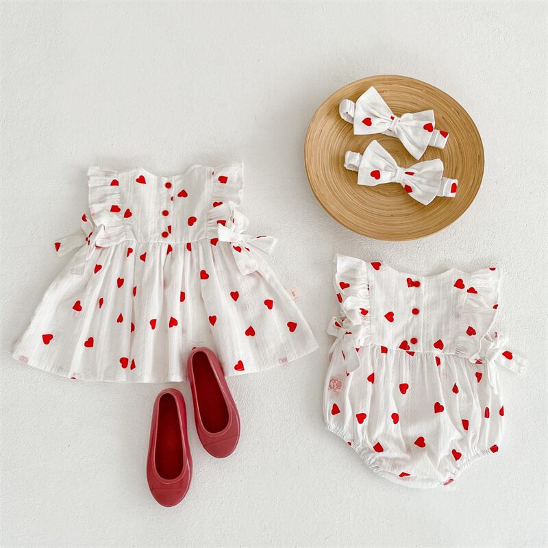 【海外からの取り寄せ】ins 夏新作 子供服 姉妹 お揃い 選べる2タイプ ハート柄 ロンパース ワンピース 可愛い リボン #[ckd1094531_17600]【送料込み】【250415】