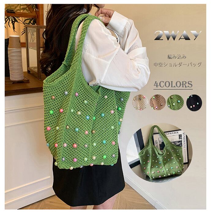 【海外からの取り寄せ】 2WAYショルダーバッグ 編み込み 編み物バッグ かごバッグ風ショルダートートバッグ #[bag1701_13900]【送料込み】【250711】
