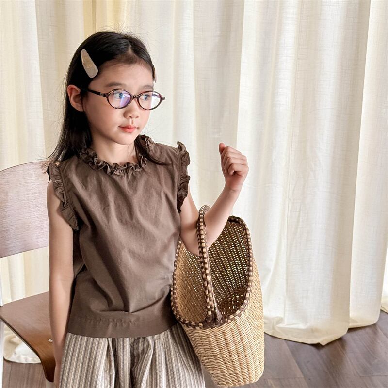【海外からの取り寄せ】2025夏新作 女の子 フリル ノースリーブ 2色 無地 ブラウス トップス 可愛い 子供服 おしゃれ #[ckd1094541_12800]【送料込み】【250524】