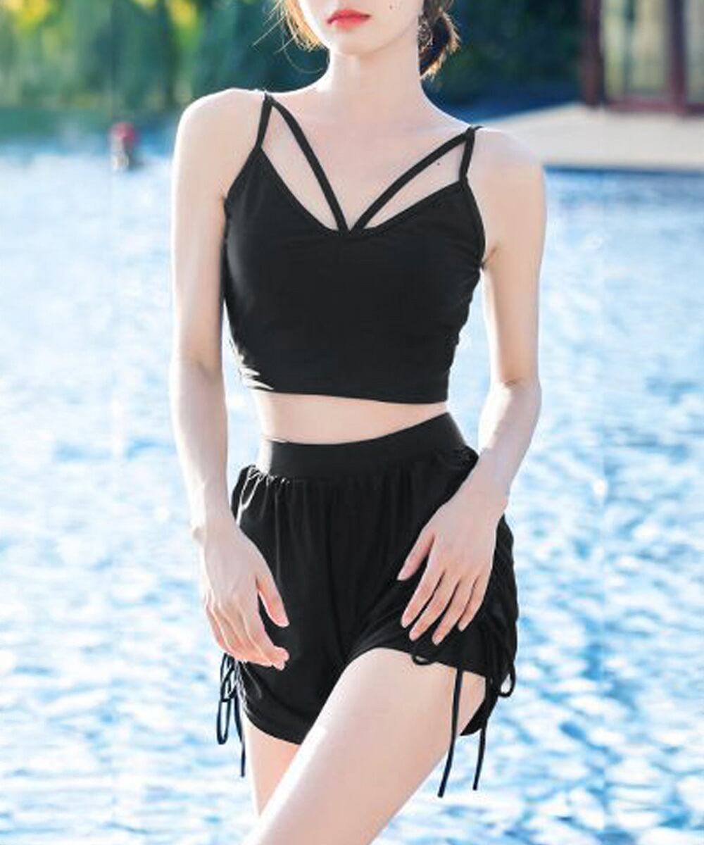 モノトーンでシンプルながらもスタイリッシュな水着3点セット