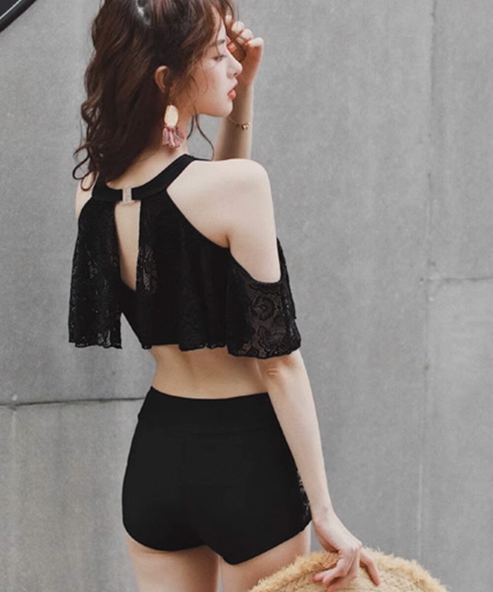 ハイウエスト水着黒 セパレート水着温泉 フリル水着 海水浴