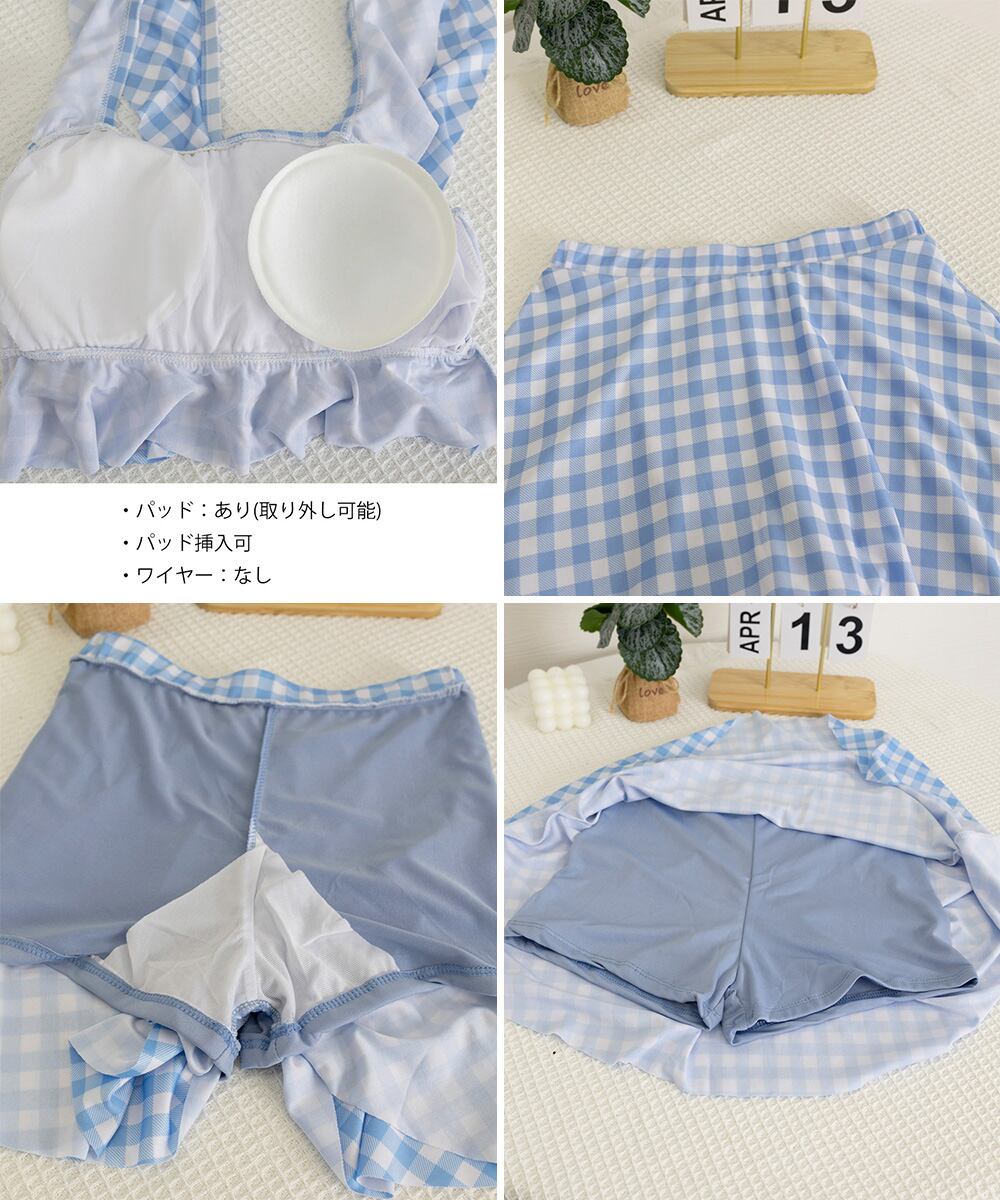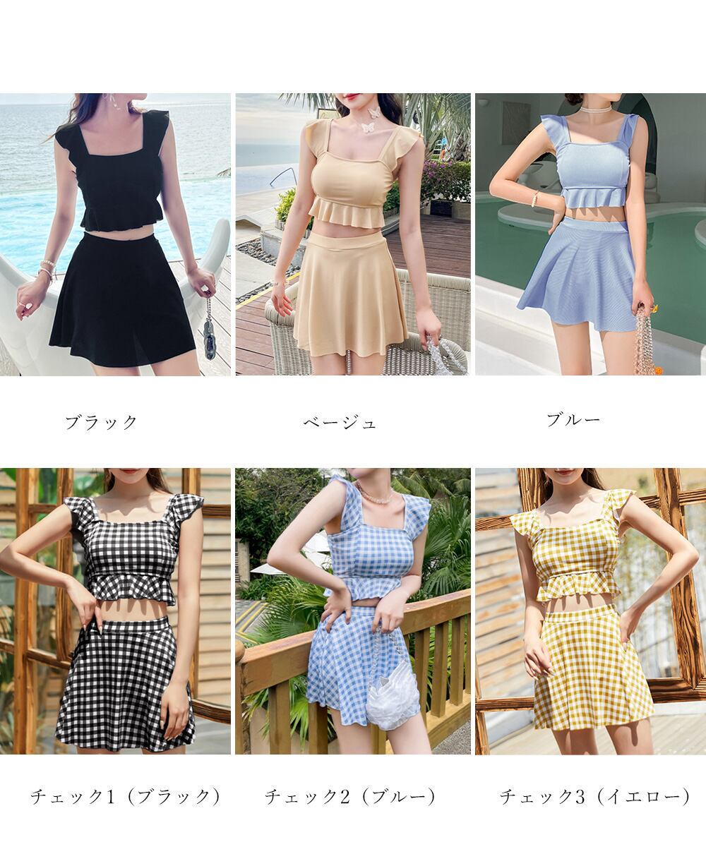 ギンガムチェックセパレート水着 スクエアネック ガーリータンキニ水着 おしゃれ 夏海プール水着 韓国風 ビスチェ風ビキニ