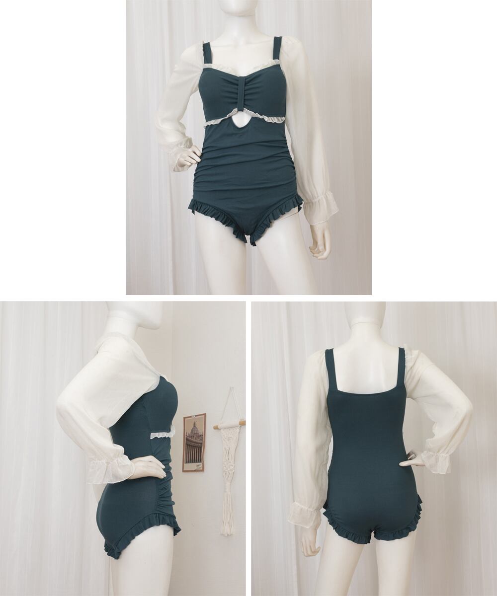 【日本倉庫からの発送】 ワンピース水着 シースルー袖 体型カバー #[85YN-900586_18200]【送料込み】【250727】