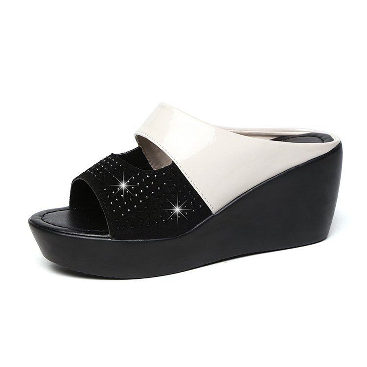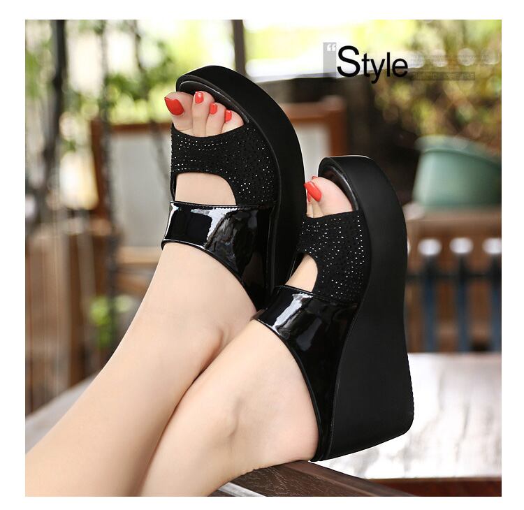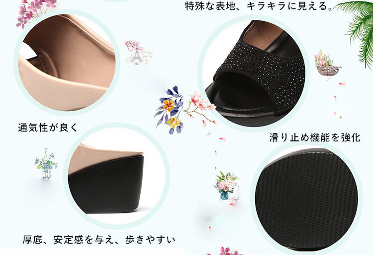 7.5cmのウエッジソールで安定感があって、履くだけで美脚効果のある厚底サンダルがお目見え~