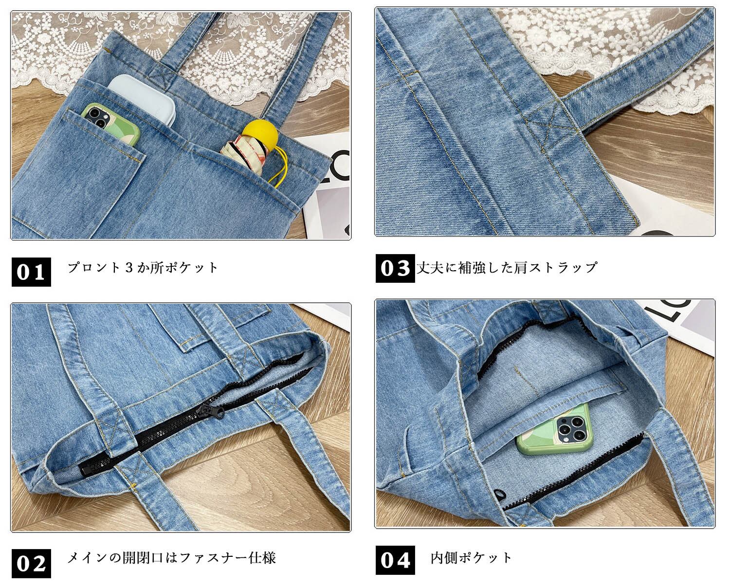 【海外からの取り寄せ】2022新作 メンズ レディース ショルダー トートバッグ デニム 軽量 ポケット 大容量 カジュアル #[bag821_9900]【送料込み】【250915】