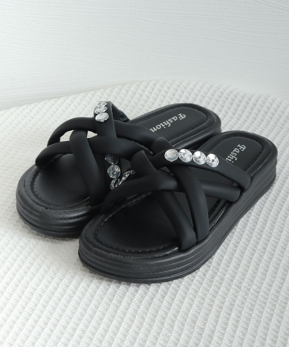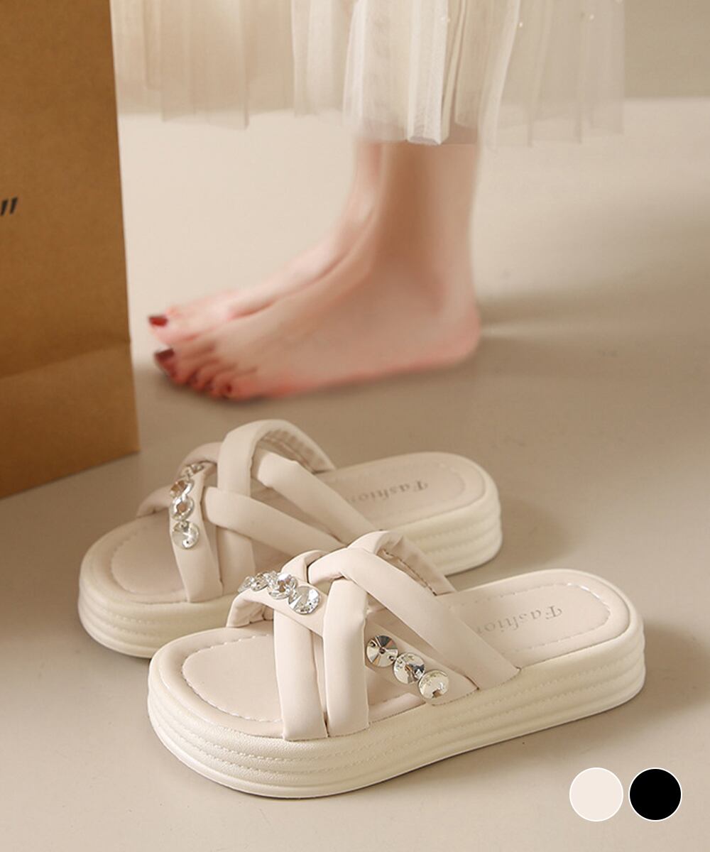 【日本倉庫からの発送】 厚底サンダル ラインストーン レディース #[99MOXC-194_22400]【送料込み】【250915】