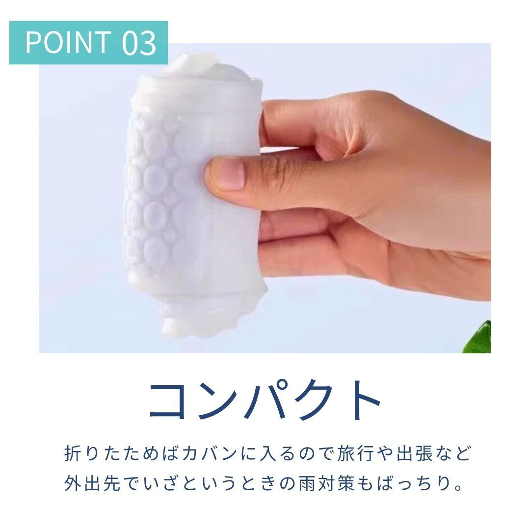 折りたたんでもかさばらないためカバンの中に入れて持ち歩くこともでき、いざというときの雨対策もばっちり。 雨の日の靴でも水濡れや汚れを心配することなく、おしゃれに通勤、通学できるおすすめアイテムです。また、旅行や出張など外出先で突然の雨に遭遇しても安心です。