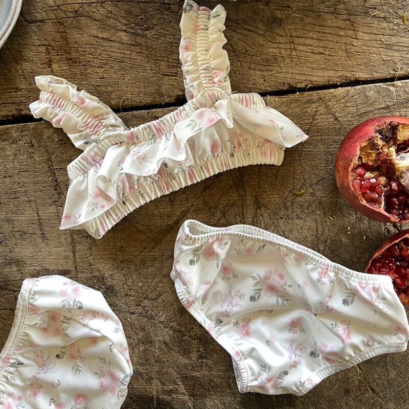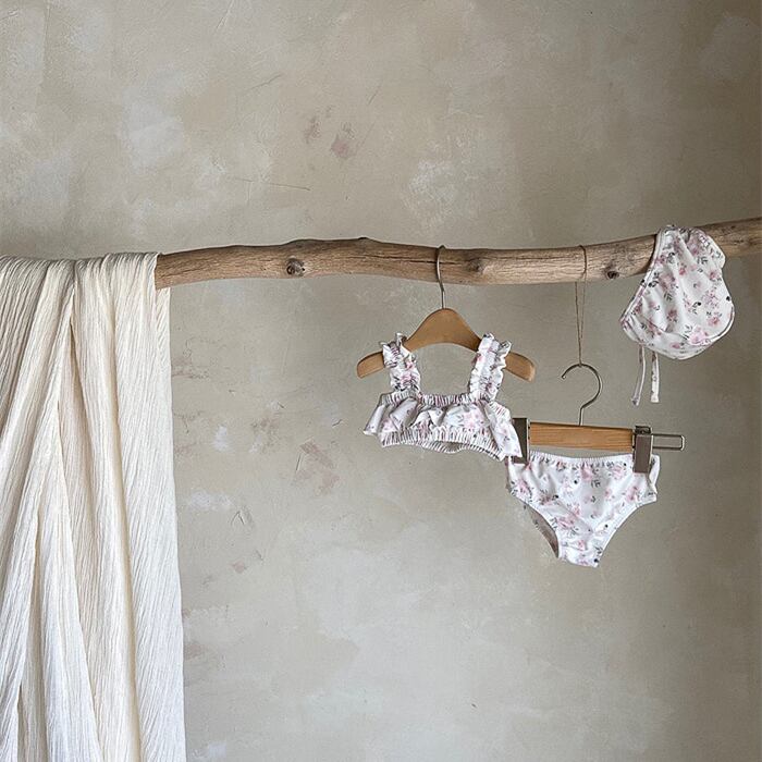 【海外からの取り寄せ】ins 夏新作 ベビー水着 2点セット 帽子付き 花柄 女の子 ビーチ 温泉 キッズ ビキニ 可愛い #[ckd1091936_25000]【送料込み】【250718】