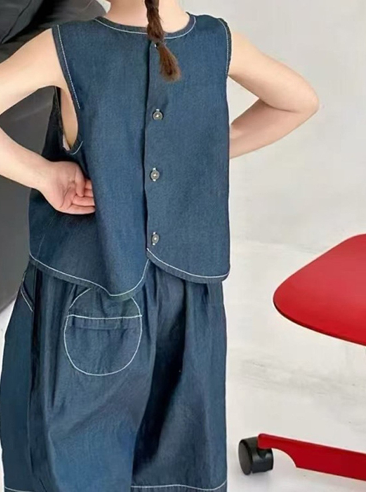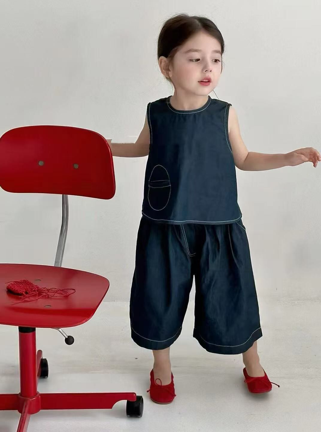 【海外からの取り寄せ】 2025新作 韓国子供服 キッズ デニム セットアップ ノースリブ ワイドパンツ #[kids846_21800]【送料込み】【250524】
