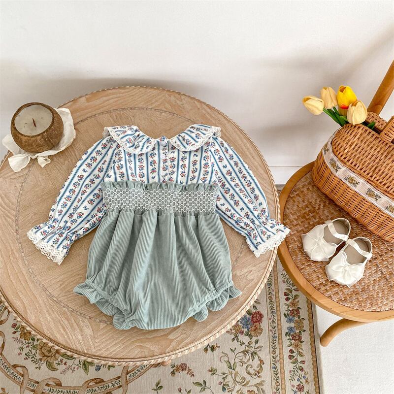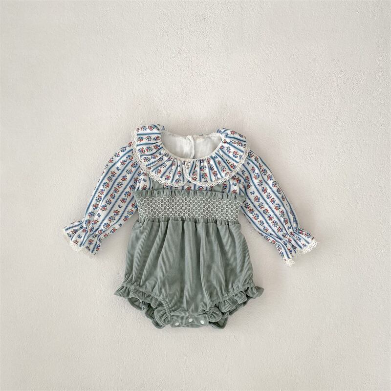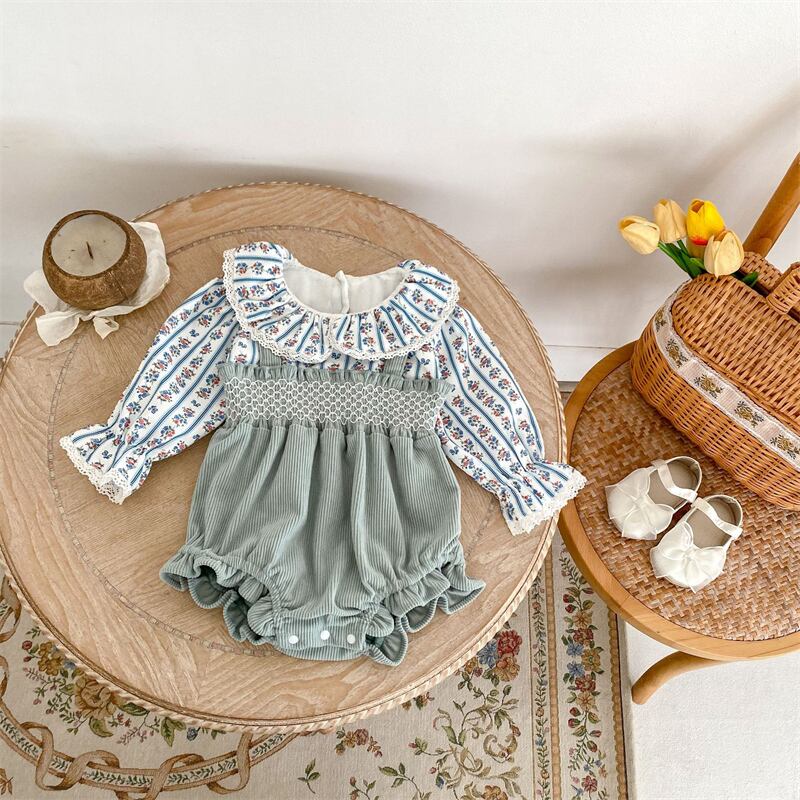 【海外からの取り寄せ】2024秋新作 ベビー服 女の子 コーデュロイ ロンパース フェイクレイヤード 長袖 子供服 可愛い #[ckd1094026_22700]【送料込み】【250511】