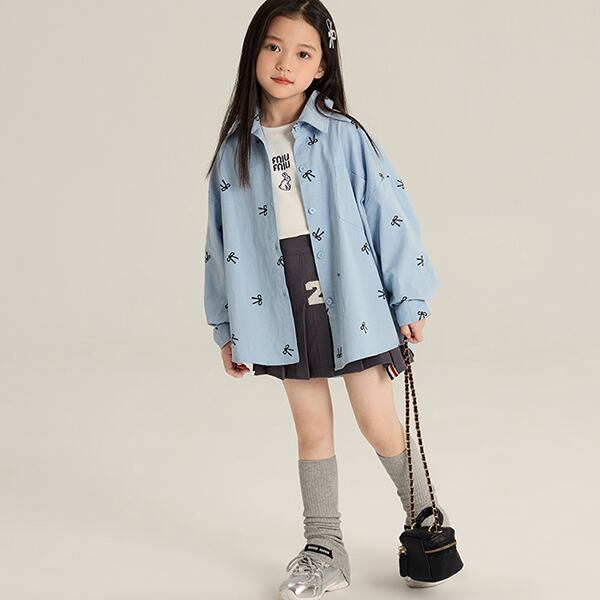 【海外からの取り寄せ】 2025新作 韓国子供服 子供 キッズ リボンプリント シャツ ブラウス パフスリーブ #[kids848_19800]【送料込み】【250508】