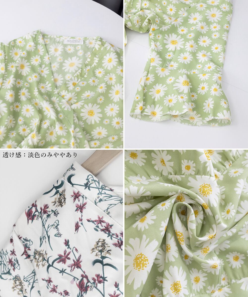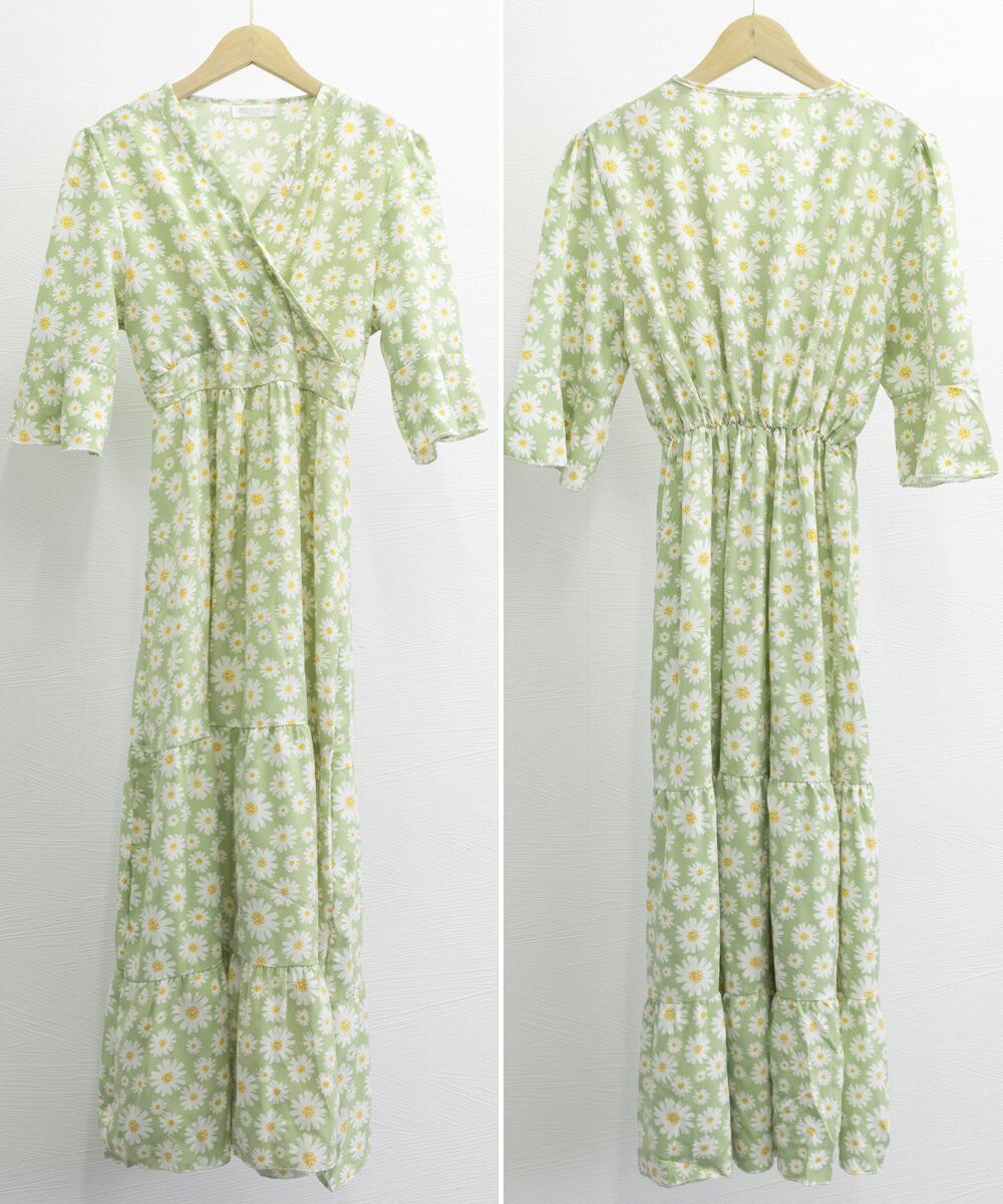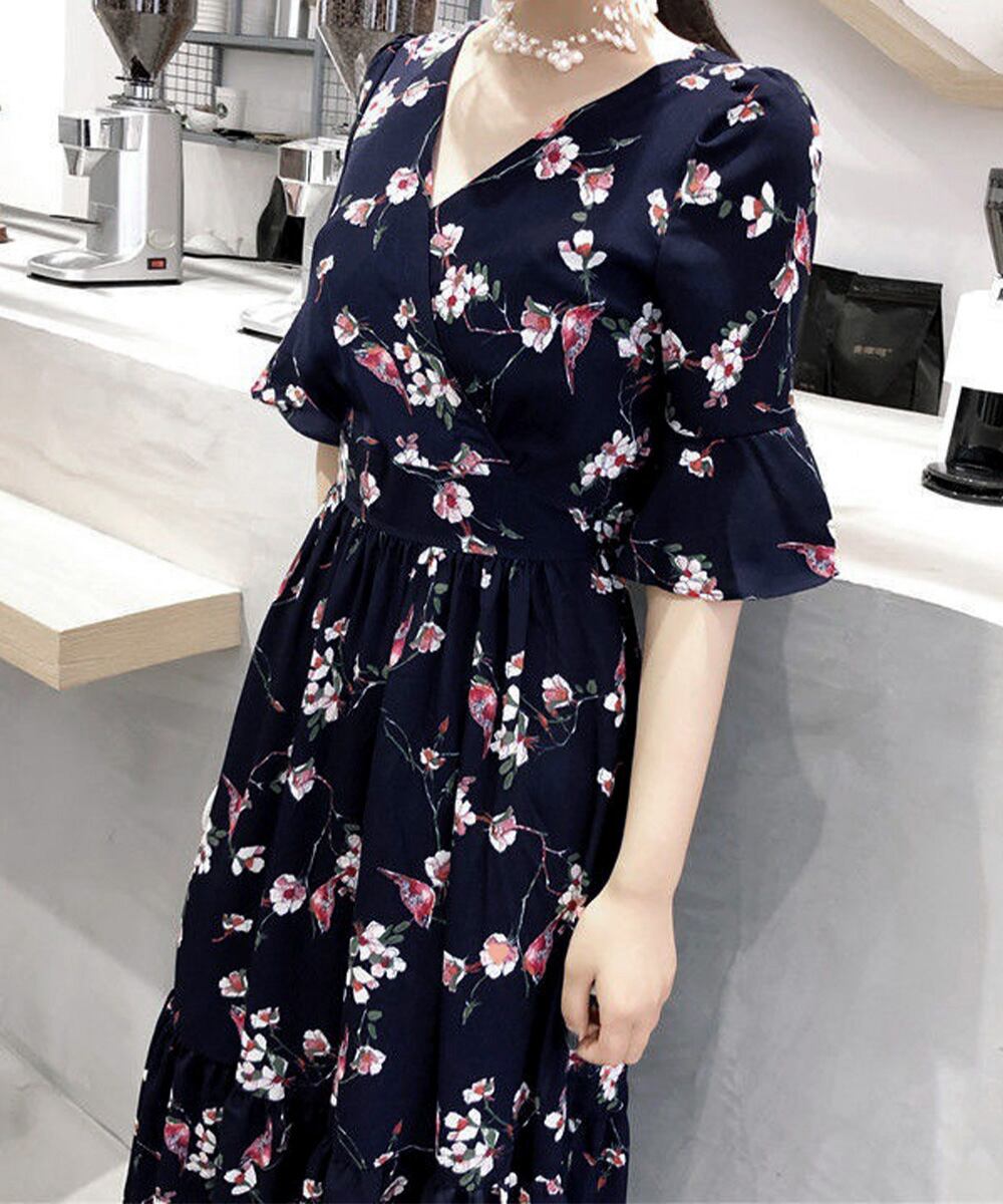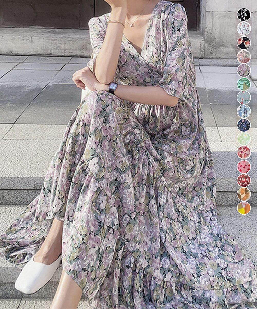 【日本倉庫からの発送】 花柄ワンピース5分袖ティアードワンピース #[1YDG-007_21600]【送料込み】【250530】
