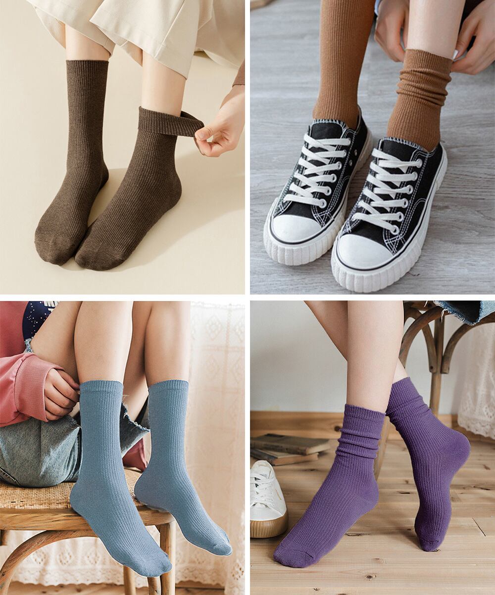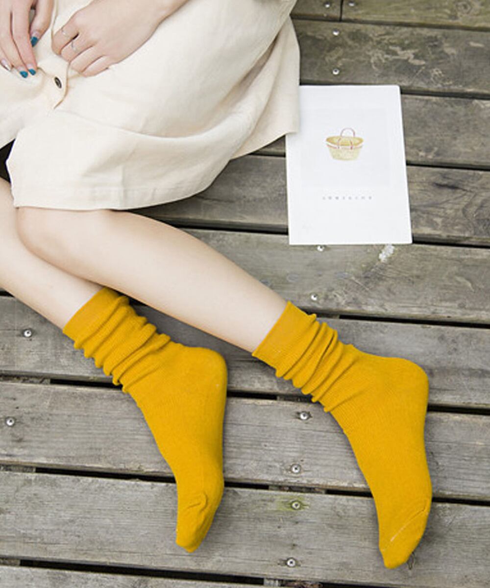 無地綿混ソックス シンプル 通学靴下 レトロ カラーソックス カラバリ靴下 蒸れない カジュアルクルーソックス 春夏秋冬