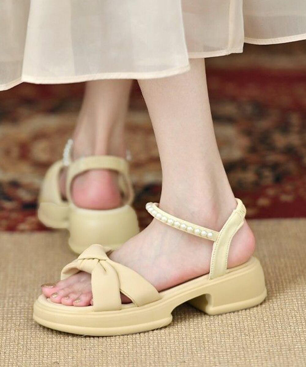 【日本倉庫からの発送】 太ヒールサンダル レディース パール付き #[99YYXC-042_23700]【送料込み】【250915】