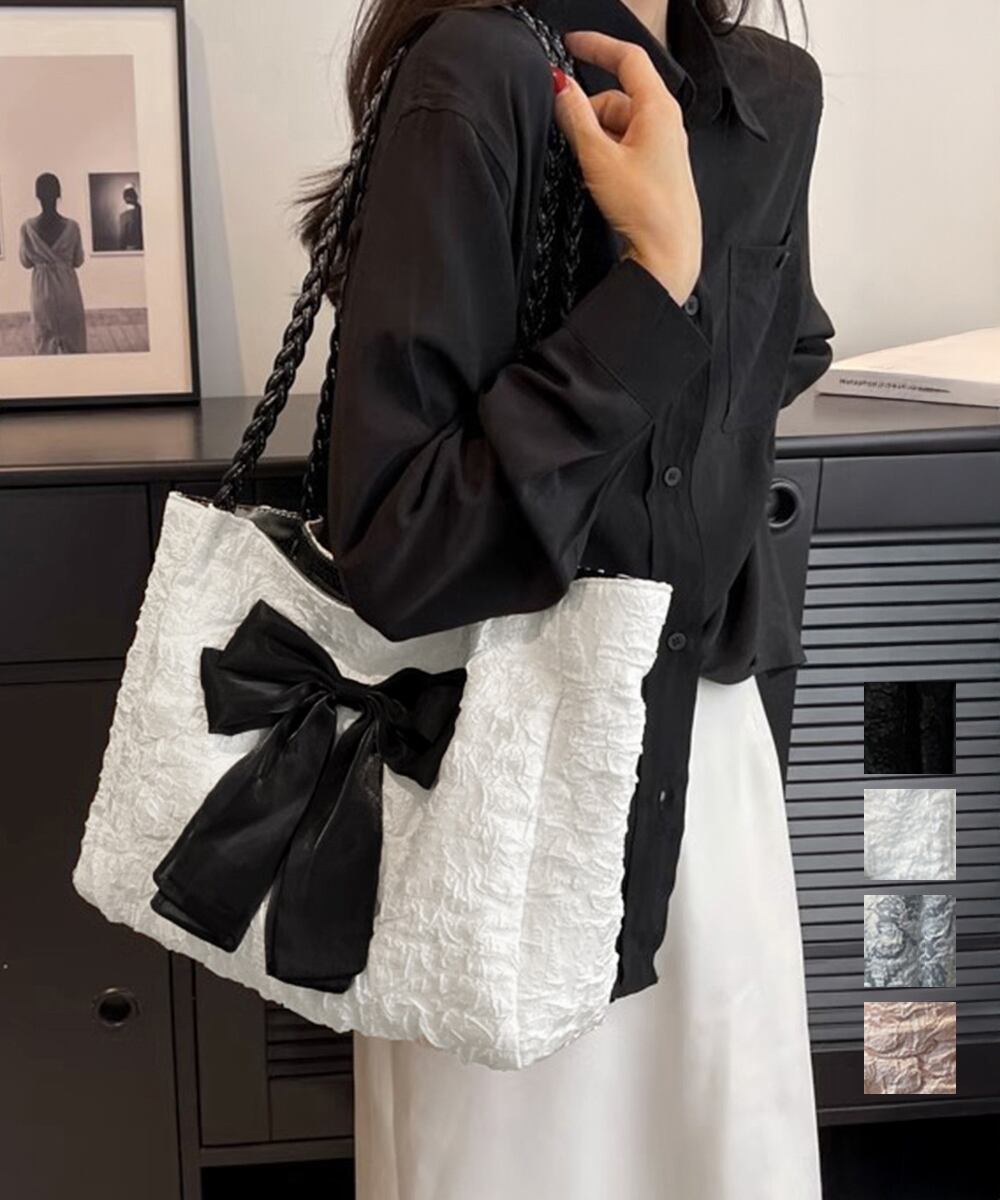 【日本倉庫からの発送】 ビッグリボントートバッグ 肩掛け 軽量鞄 #[84HBJP-009_25300]【送料込み】【250523】
