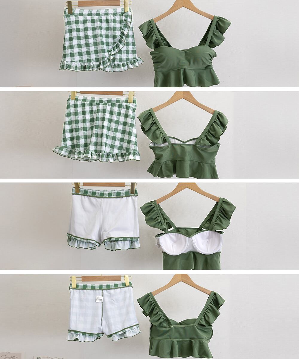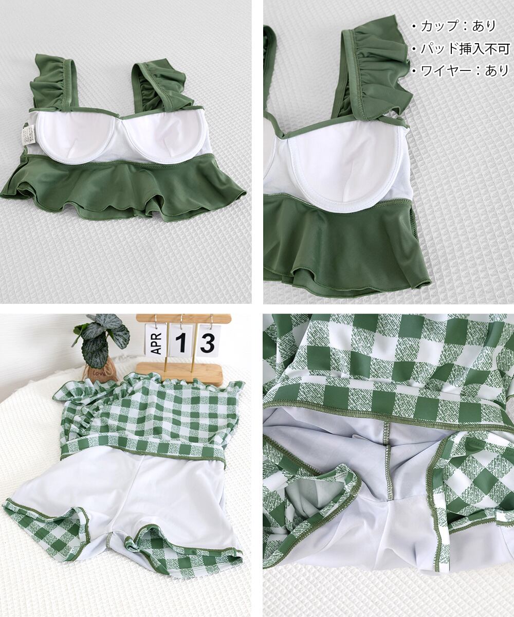 フリル付きギンガムチェック柄のかわいいセパレート水着。