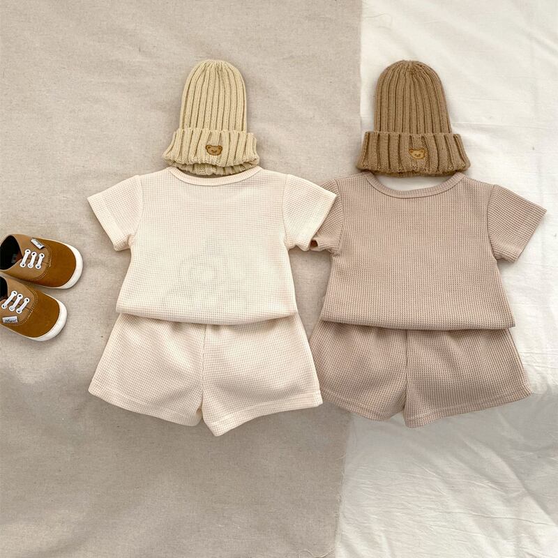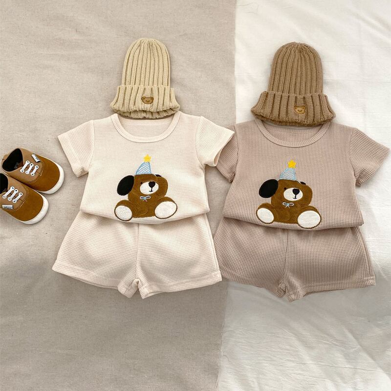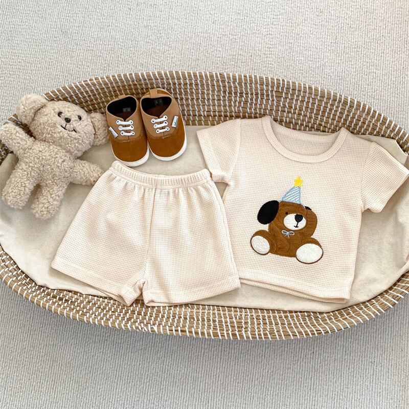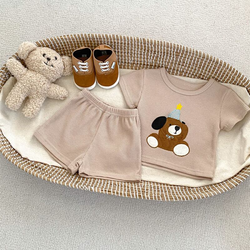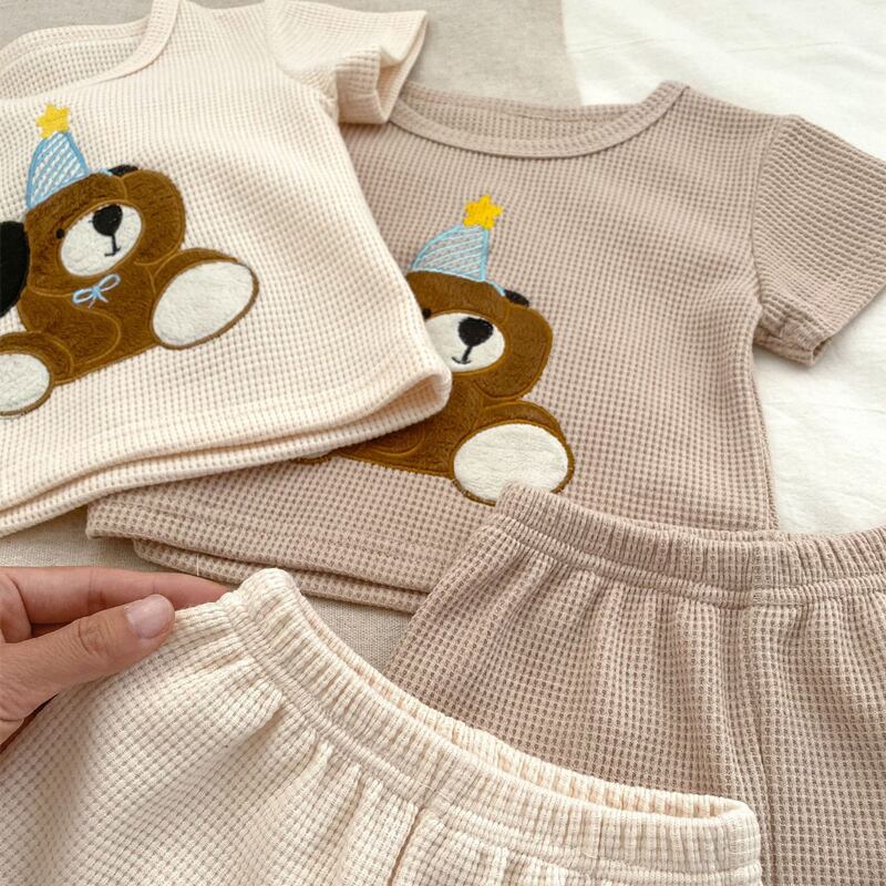 【海外からの取り寄せ】2024夏新作 ベビー服 ワッフル セットアップ 半袖Tシャツ ショートパンツ 可愛い 刺繍 クマ柄 #[ckd1093253_16700]【送料込み】【250524】