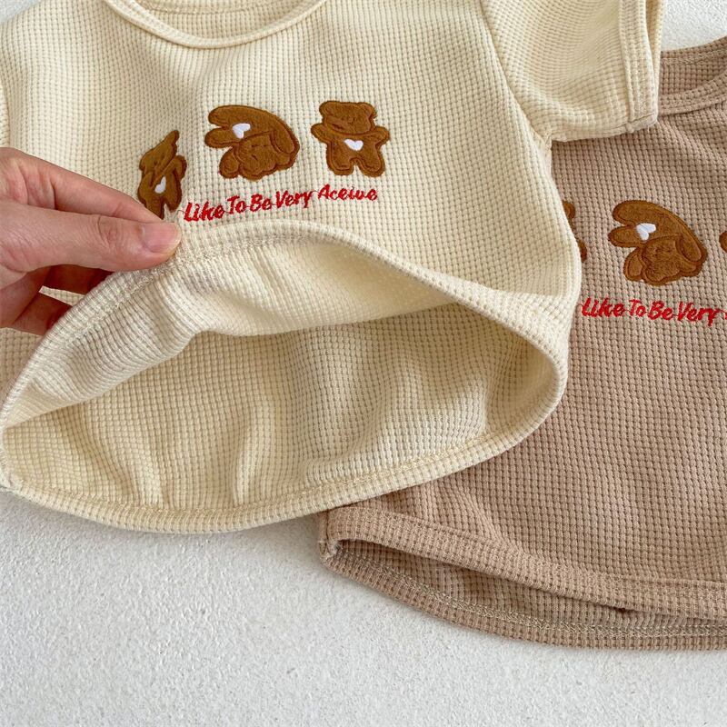 【海外からの取り寄せ】2023夏新作 ベビー服 ワッフル セットアップ 半袖Tシャツ ショートパンツ 可愛い 刺繍 クマ柄 #[ckd1091630_17700]【送料込み】【250524】